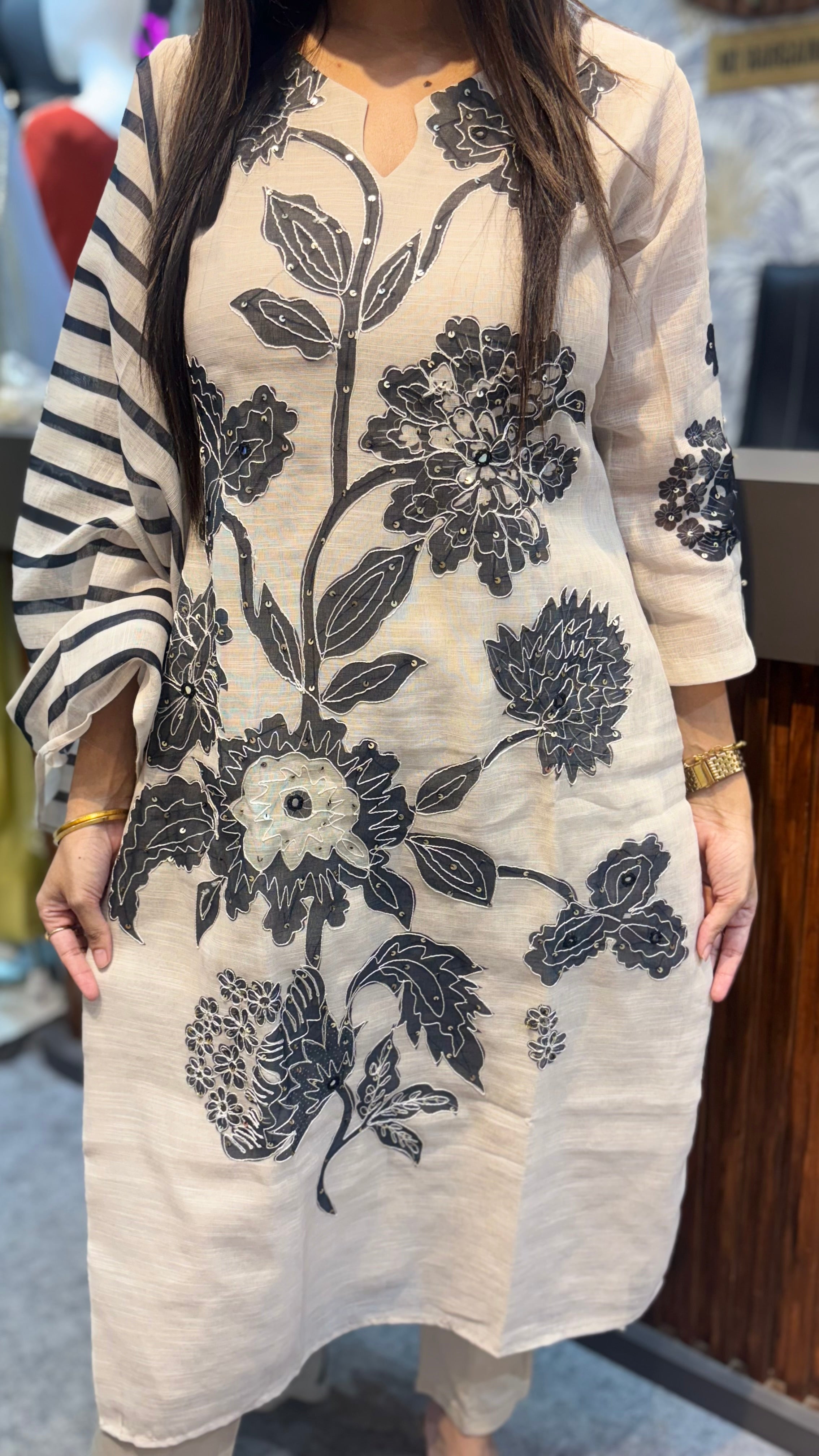 Ever confused about the perfect contrast to go for, you can never go wrong with this beige and black combo with super knot work all over for that perfect sophisticated look🖤🤍