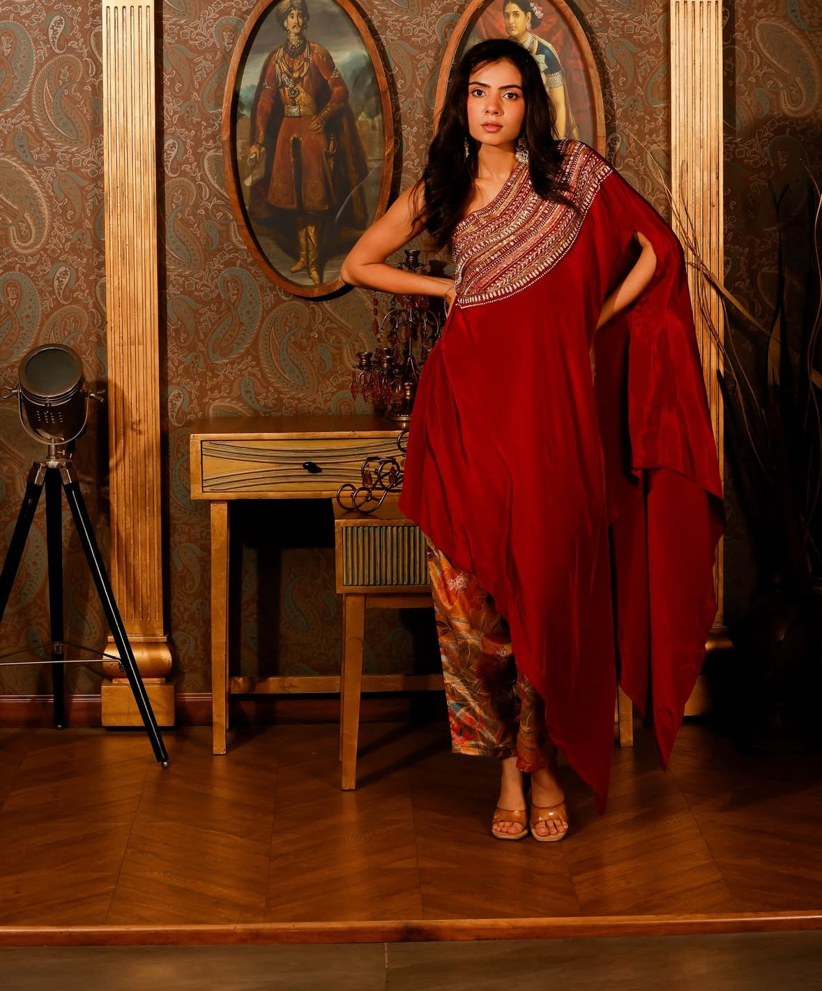A lavish Indo western outfit that compiles the essence of handwork with modern off shoulder design is a total die heart piece to go for this festive season.