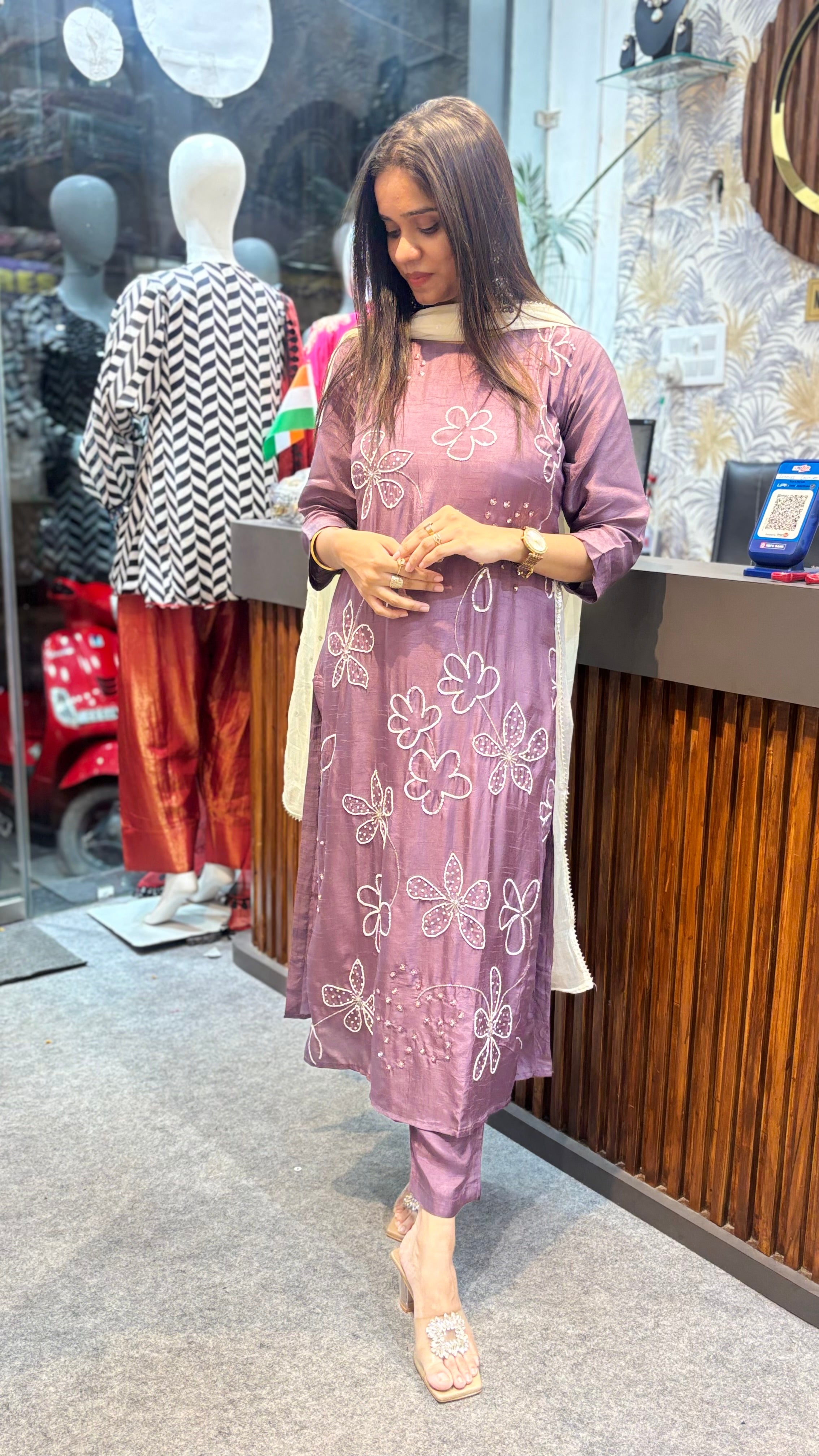 All over moti and cutdaana work on Roman silk fabric with attached lining‼️